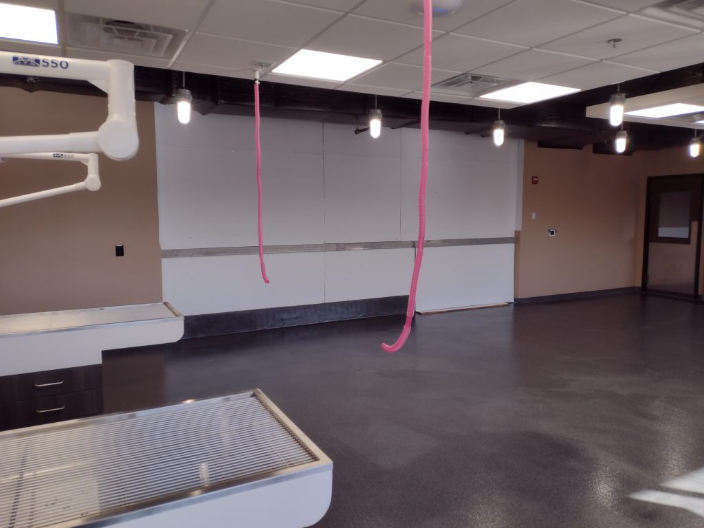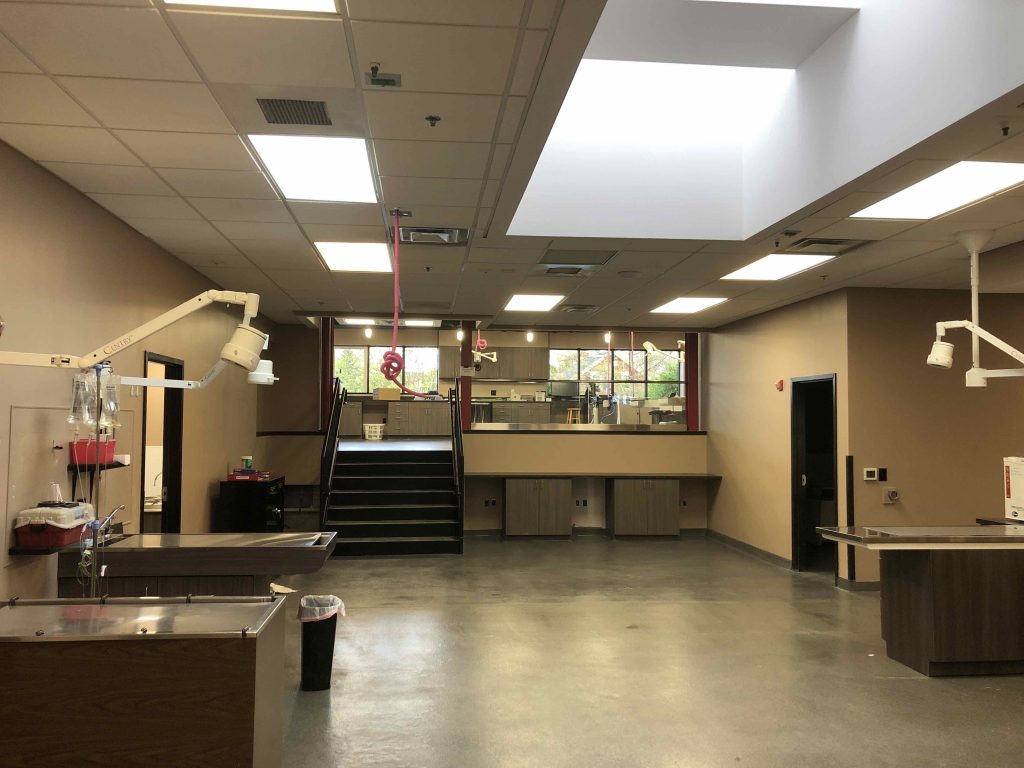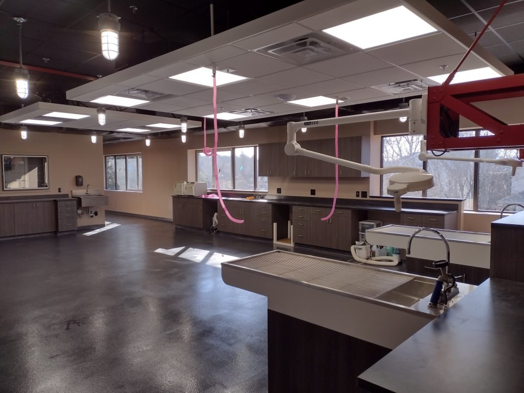 Aspects of this project included selective demolition, customized, modern mechanical systems, full electrical systems, a full surgical suite, X-ray facilities, custom casework, and poured epoxy floors. Additional exam rooms and employee facilities, as well as a fully revamped lobby and reception desk were a part of the renovation process.