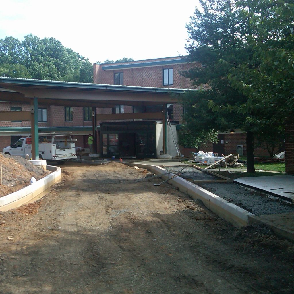The Wesley Enhanced Living – Evangelical Manor “Front Canopy” project was remodeling of the front porte-cochere and main entrance areas of the building. The removal of the existing guard shacks, existing foundations, and existing canopies was required for the erection of the new porte-cochere and driveway. Structural steel and translucent fiberglass panels with a custom gutter system comprised the construction of the new porte-cochere. Also included was a custom lighting package, new asphalt driveway and parking lot and new landscaping.