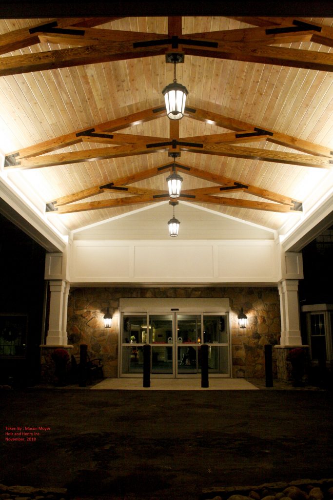 The Balcony & Porte-Cochere renovations included the removal of existing finishes and ground level patios as well as the complete removal and reinstalation of the asphalt shingle roof. The addition of new balcony dormer roofs complete with PVC trim, porch coatings, stainless steel porch railings, and EIFS coatings completed the balcony construction. The Porte-Cochere portion of the project require the existing structure to be raised prior to the installation of a new exposed wood roof deck with exposed timber and steel joists. The addition of PVC trim, columns and stone piers completed the facade.