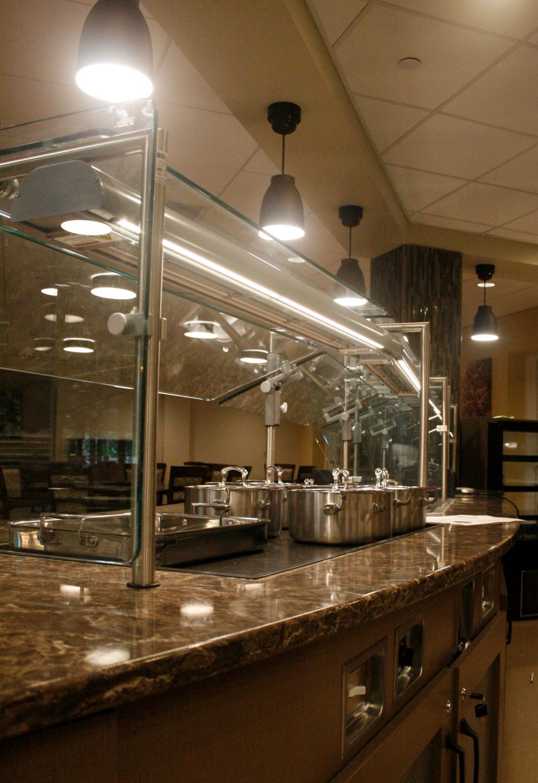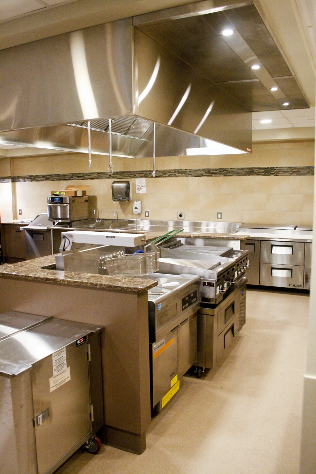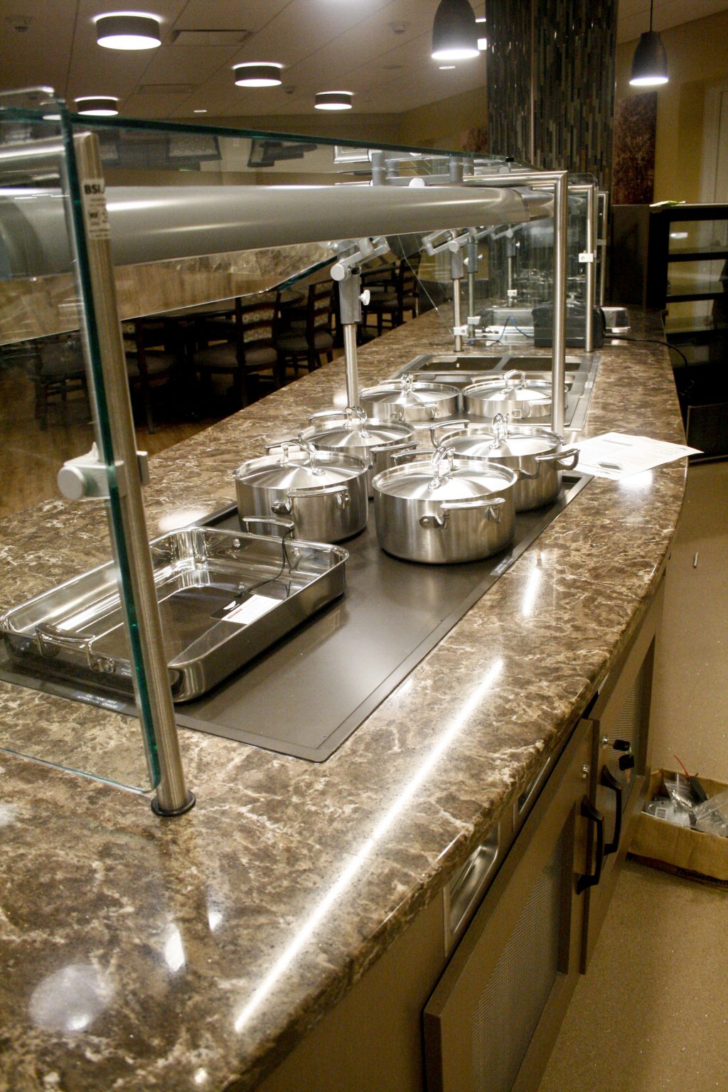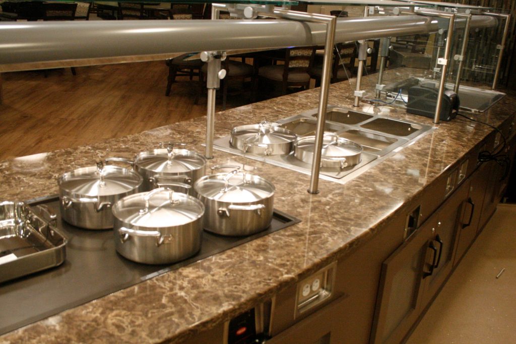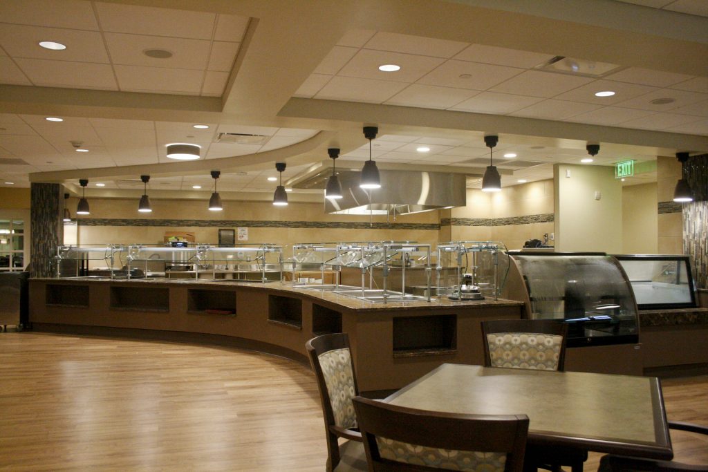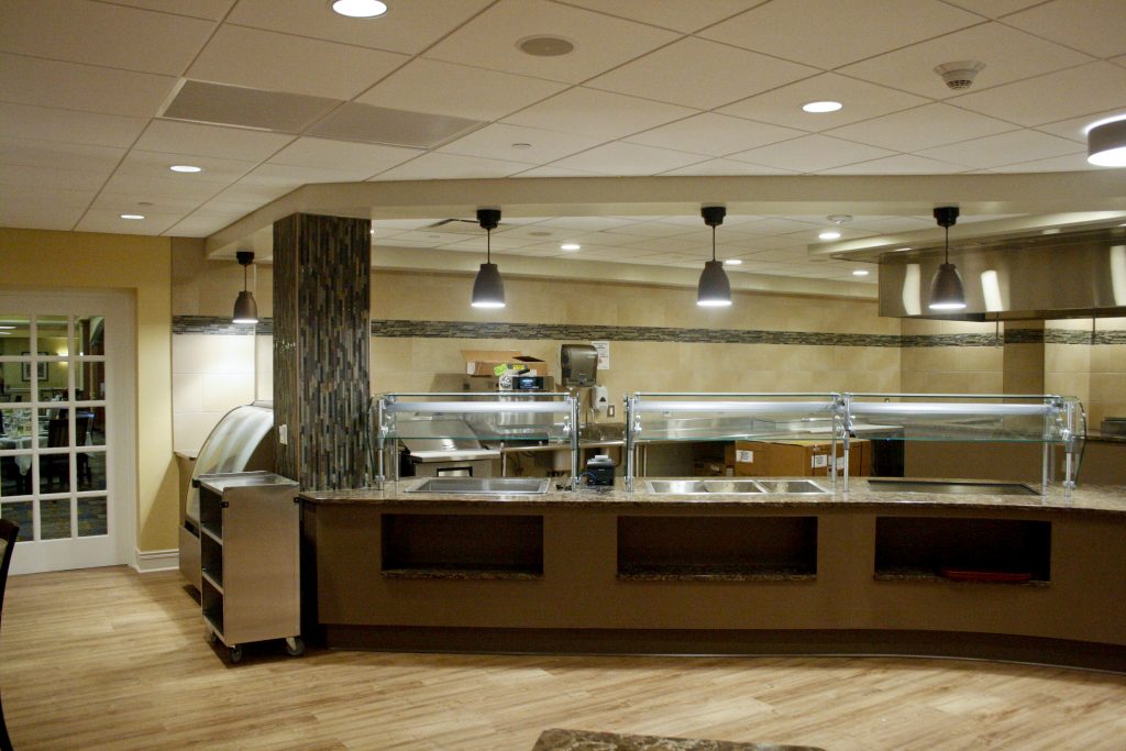 The Gwynedd Estates Cafe renovation was a full turn-key renovation of a kitchen and dining area at an active senior living facility in Lower Gwynedd, PA. The complete demolition of the existing cafe kitchen and dining area, as well as the partial removal of the existing concrete slab for new underground utilities, was the start of the project. The project scope included steel framing and drywall partitions, wallcoverings, ceramic tiling, new entrance systems, kitchen equipment and utilities, and extensive modifications to existing plumbing, HVAC and electrical systems. Also included was a full suite of custom cabinetry and countertops that were fully coordinated with the kitchen equipment. Weekly project meetings and constant coordination with the owner’s representatives ensured a smooth project interface with the residents, as well as a smooth start-up and timely completion.